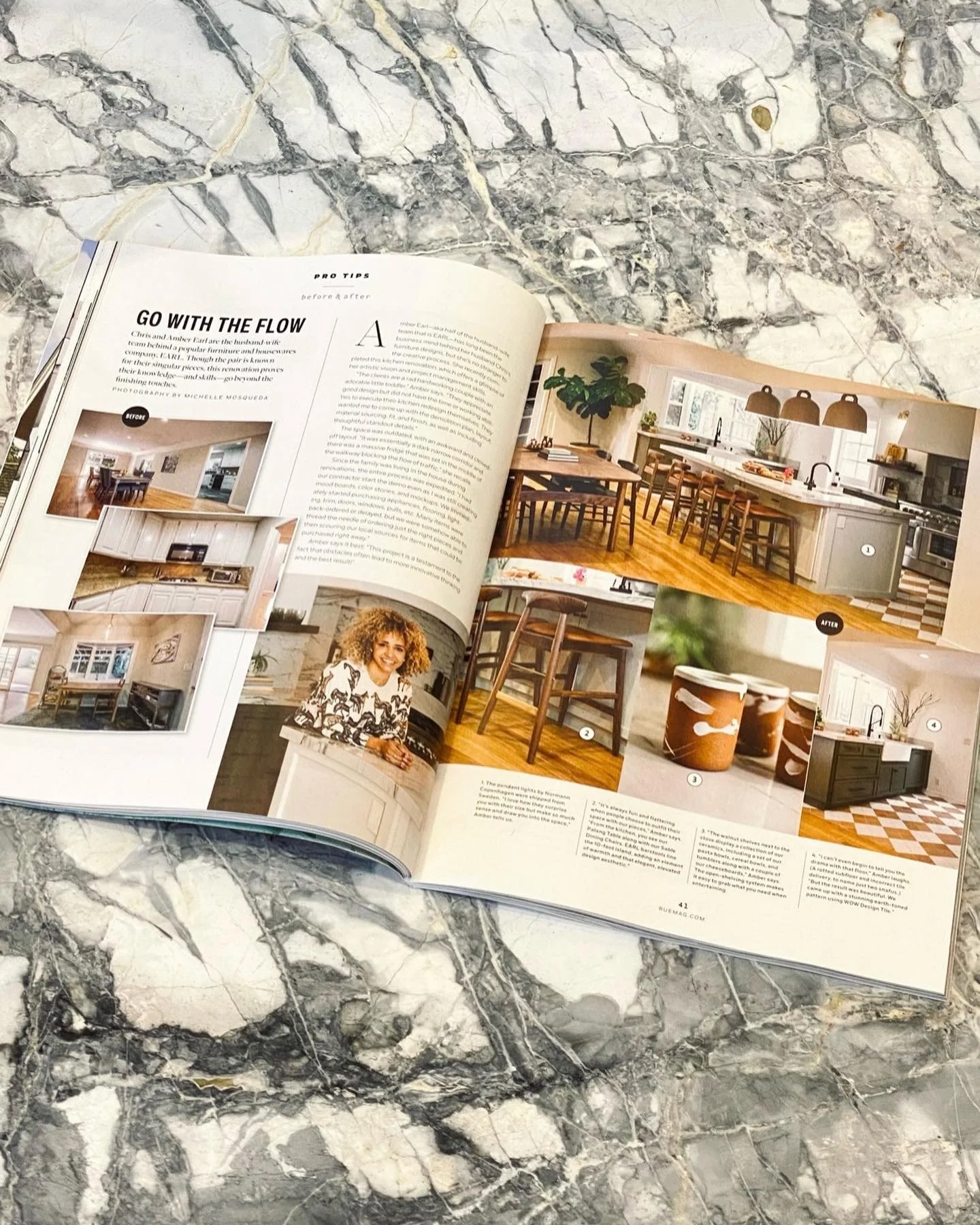 Alright, fine, I’ll tell you about the floor. There were many hiccups and bumps in the road but this one was the most special. When we demo’d the kitchen and reinforced the large beam where we removed the wall, we found that the subfloor was completely rotted out. Also, the original tile was raised so the floor was not at all level. When we removed that and put in all new subfloor the level of the floor changed in regard to the landing to the outside. Because of this, we had to get a new door, new frame, and you guessed it, (you probably didn’t) we had to re-pave the satilo tile steps that lead outside. Everything is such a ripple effect. The upside was it allowed them to get their dream dutch door as well as repair the previously cracked steps out that door. If that wasn’t enough, I must have gone through 40 different tile design layouts with the tile shop I was working with. When we finally placed our order there was a cross in the wires somewhere because the two different tile sizes that came in did not line up at all. Happily, I was able to return the wrong sized tiles and exchange for something else that would make a totally different design pattern. With those tiles in hand, I was able to put together the checkered pattern with the two tile colors clustered in fours. The process was obviously pretty frustrating at times, but in the end it became one of the most stunning aspects of the kitchen build. It's really just a testament to the fact that obsticles often lead to more innovative thinking and the best result!