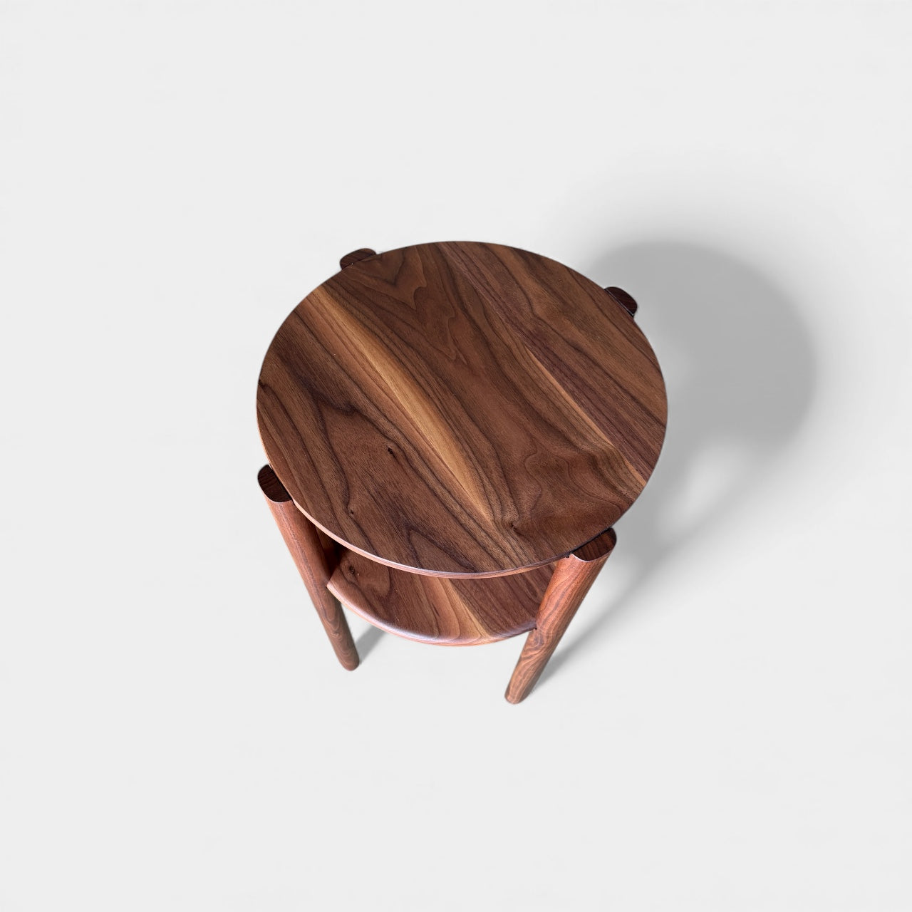 Solid wood  lacquered handmade bedside table. The double tiered nightstand is perfect for bedside storage in your bedroom. Works perfectly in walnut, maple, white oak, ash or ebonized oak next to your lounge chair or sofa. Hand crafted in Los Angeles, California.